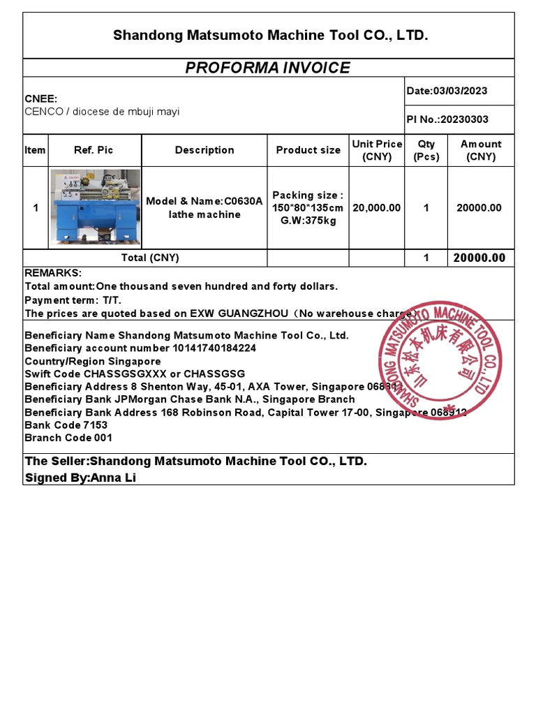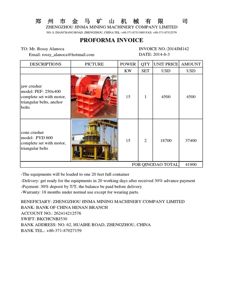 Proforma Invoice for Machinery Equipment | PDF | Economies | Banking