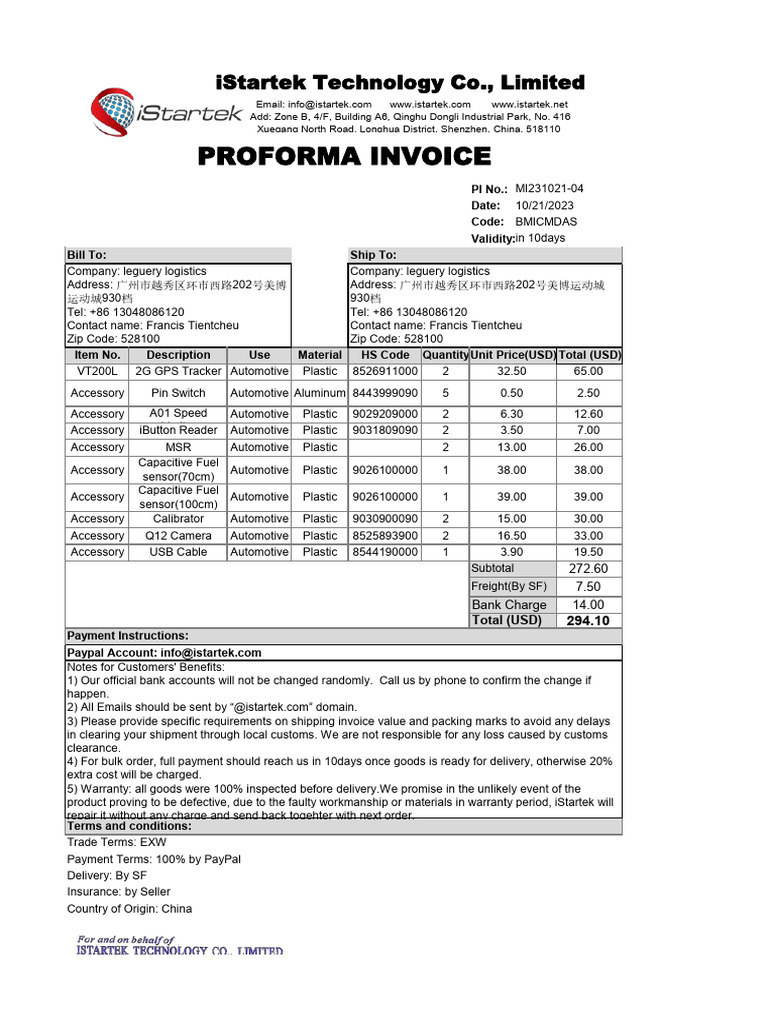 Proforma Invoice: Istartek Technology Co., Limited | PDF | Technology ...