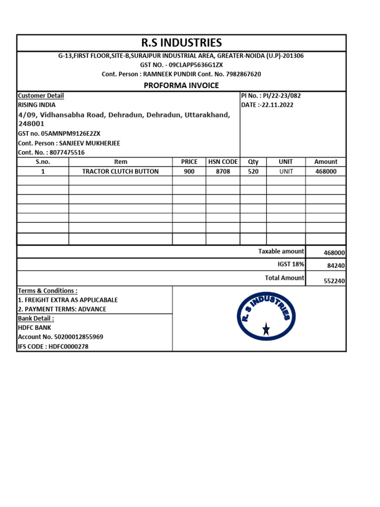Proforma Invoice for Sonal Fabricators | PDF | Payments | Economy Of India