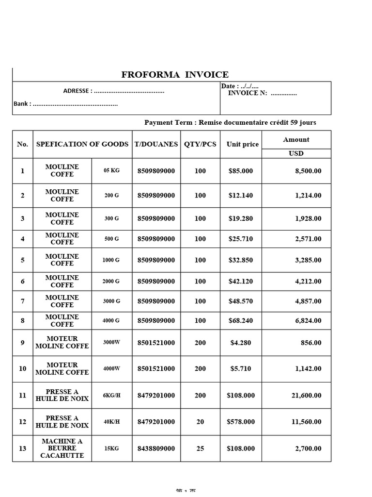 Proforma Invoice for Mill, Colloid Mill and Packing Machines | PDF