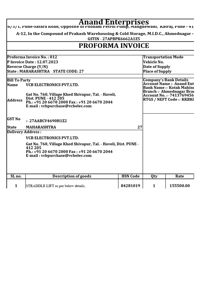 Anand Enterprises: Proforma Invoice | PDF | Invoice