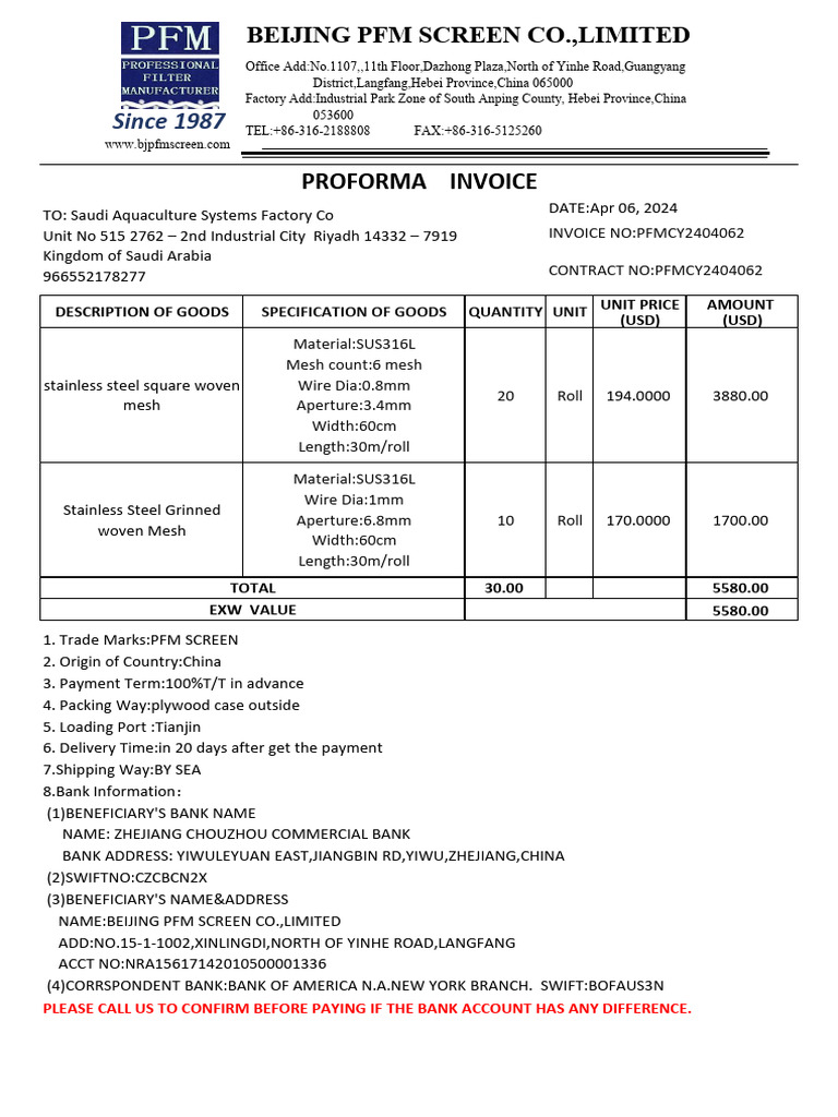 Proforma Invoice for Stainless Steel Mesh | PDF