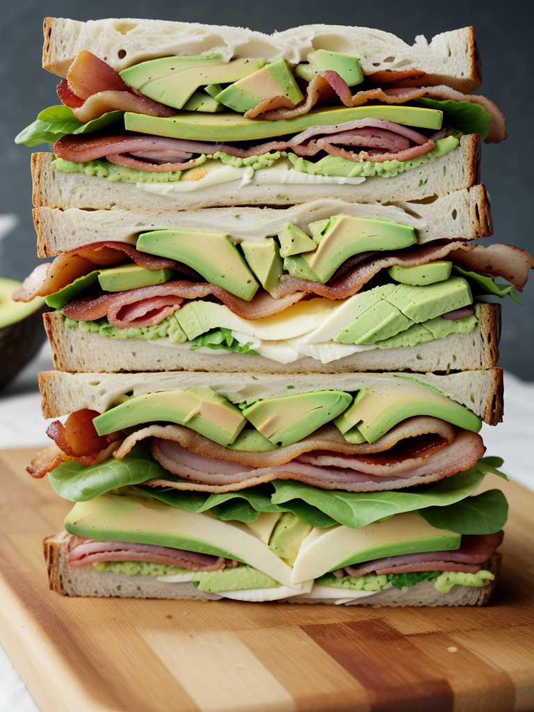 A Towering Delight: Layers of Fresh Ingredients in a Hearty Sandwich Stack