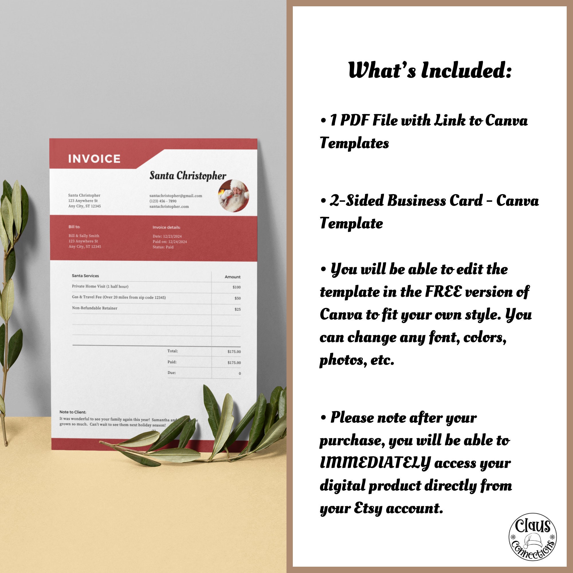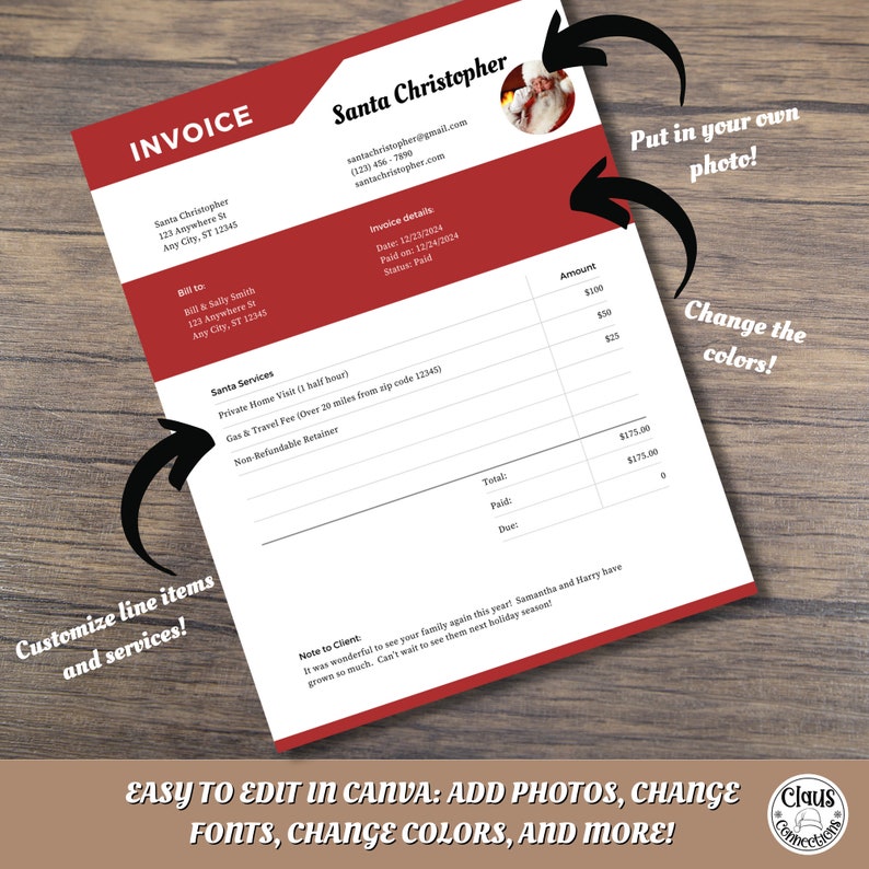 Santa or Mrs. Claus Invoice Canva Template - Etsy