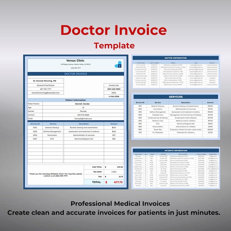 Doctor Invoice Template | Google Sheets | Patient Billing & Medical ...