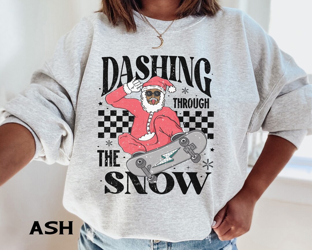 Christmas Black Santa Sweatshirt, Dashing Through Snow Santa Claus ...