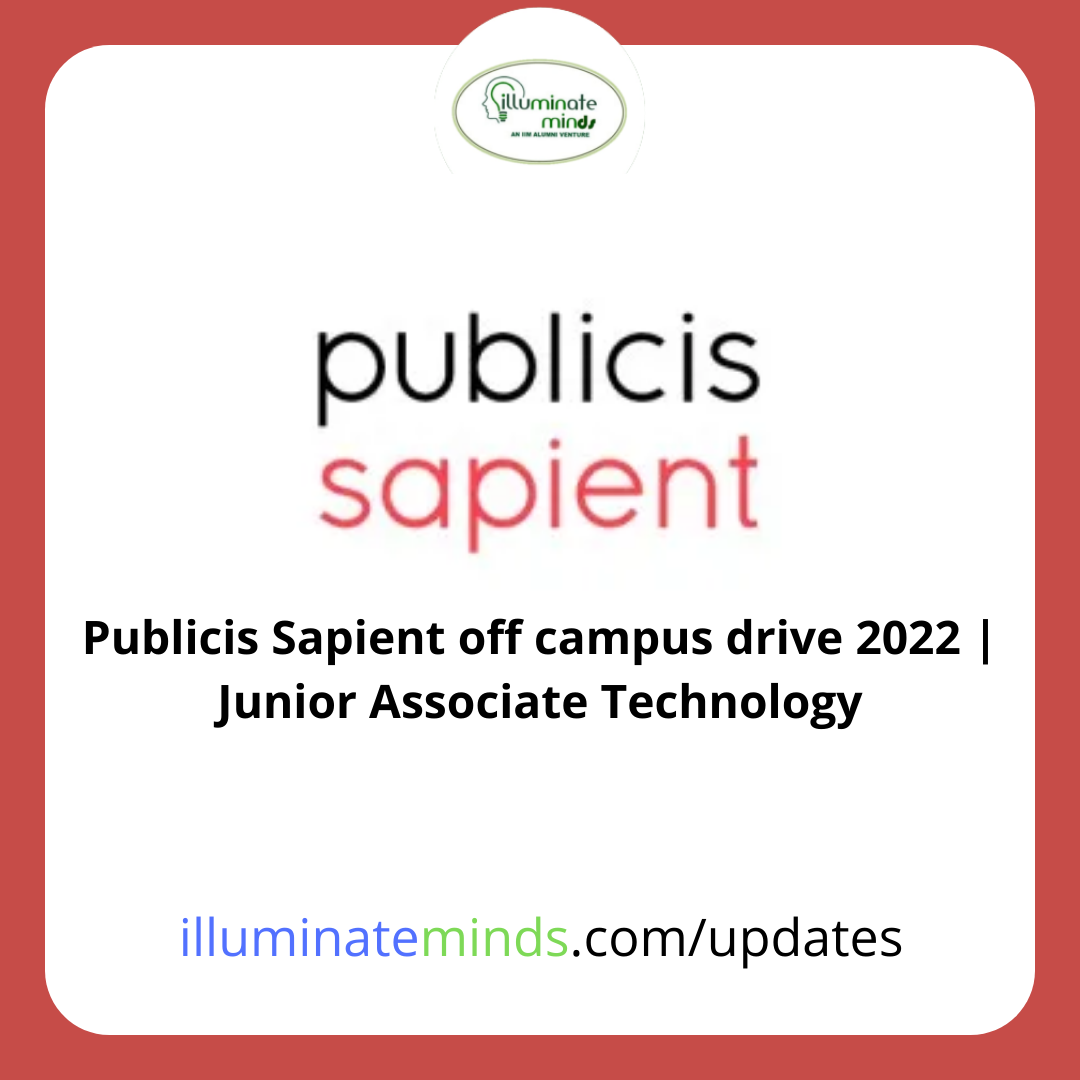 Publicis Sapient off campus drive 2022 | Junior Associate Technology ...