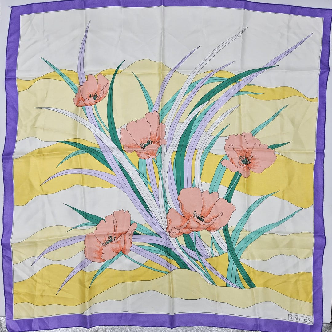 Square Sunkyung Sa Scarf - Pastel Poppies - 35 Inches by 34 Inches - Etsy