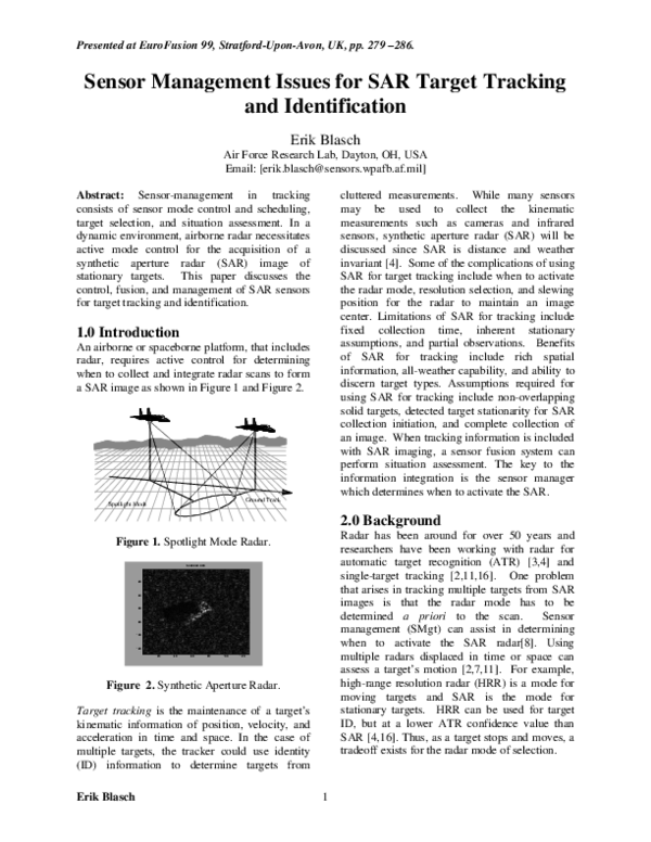 (PDF) Sensor Management Issues for SAR Target Tracking and Identification