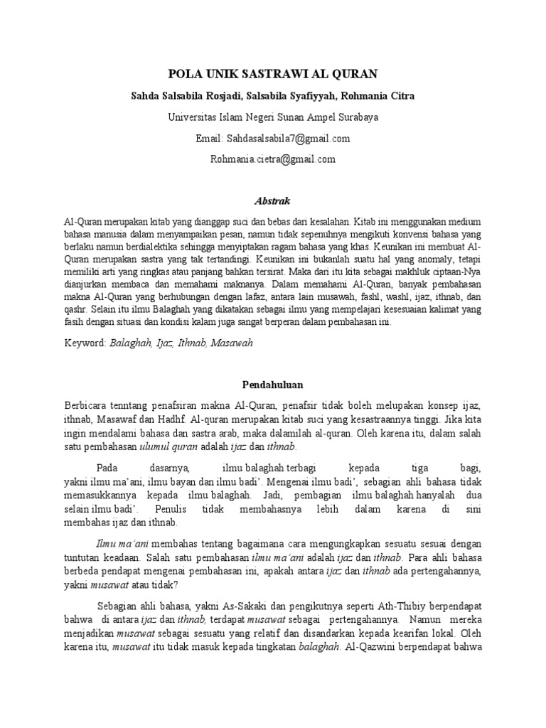 Pola Unik Sastrawi Al Quran | PDF | Filsafat | Agama & Spiritualitas