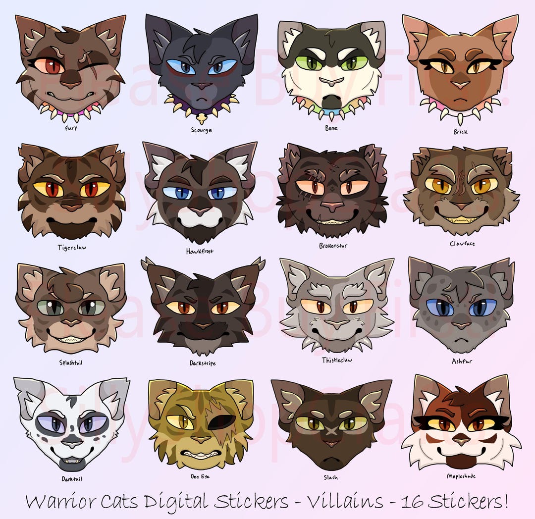 Warrior Cats Stickers: Clan Villain Pngs - Faces - (instant Download ...