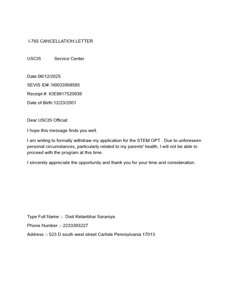 USCIS Withdrawal Letter PDF | PDF