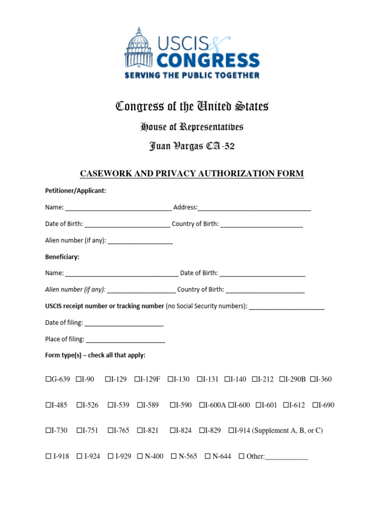 Uscis Privacy Release Form - Office of Senator Banks Rev Apr 2025 | PDF ...