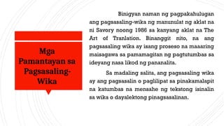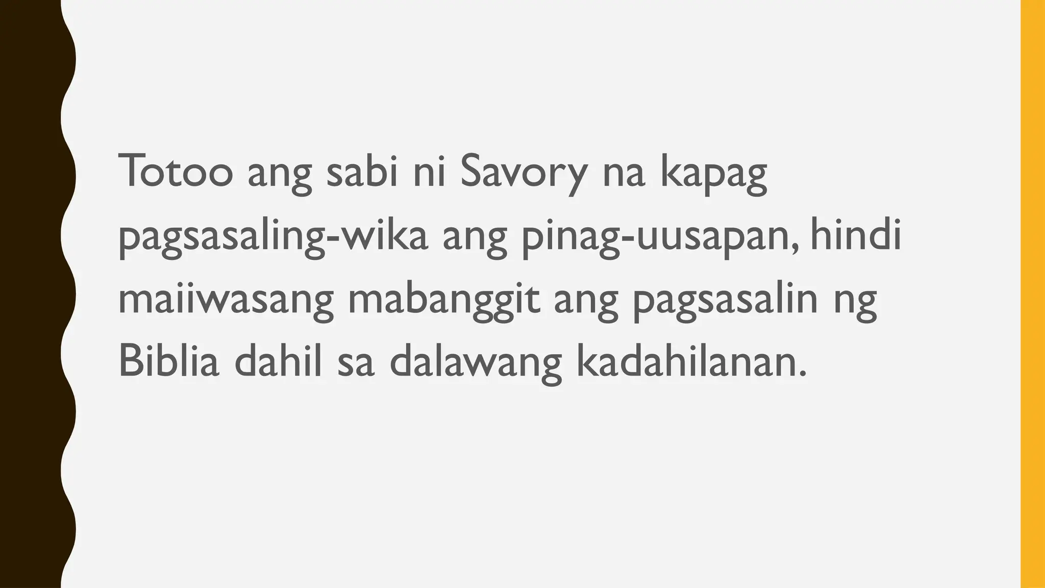 Pagsasalin ng Wika - Totoo ang sabi ni Savory na kapag pagsasaling-wika ...