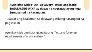Katangiang Dapat taglayin ng isang Tagapagsalin ayon kina Nida at ...