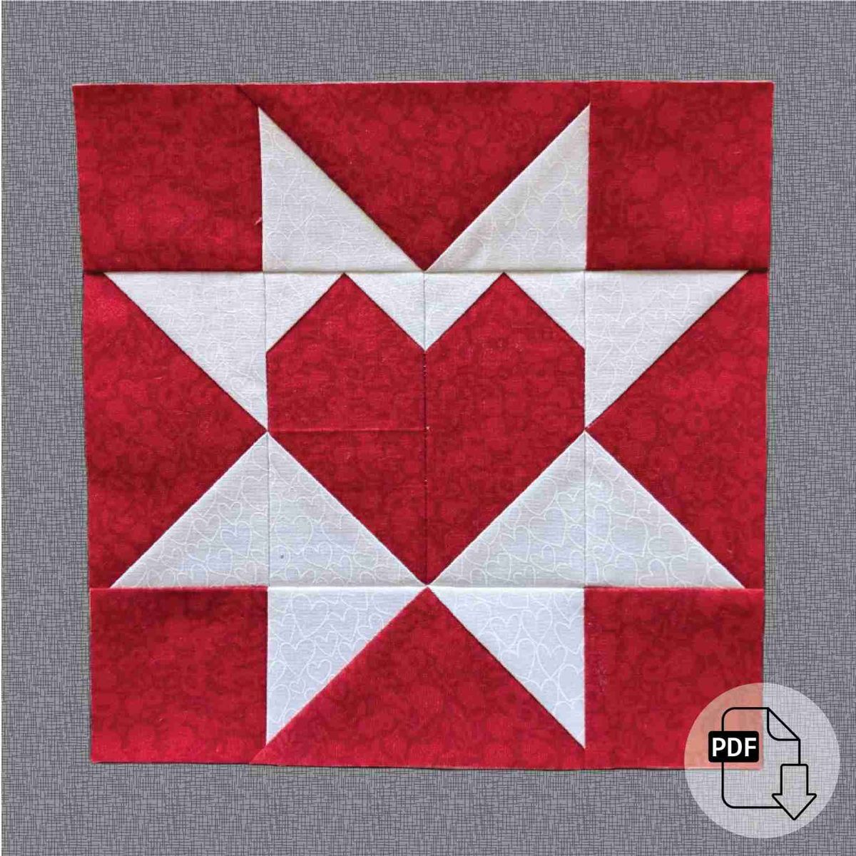 Sawtooth Star with Heart Quilt Block FPP Pattern (PDF Pattern) 6 sizes ...