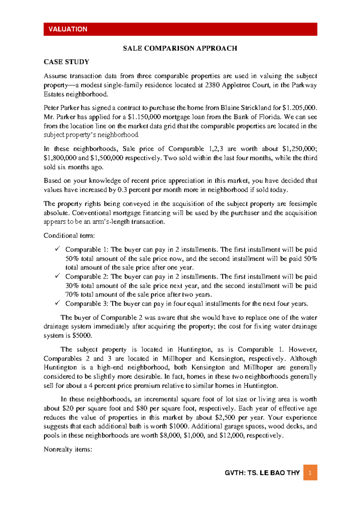 CASE Study - Valuation of Single-Family Residence in Parkway Estates ...