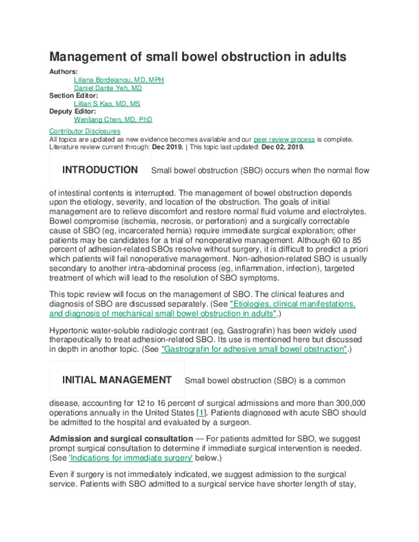 (DOC) Management of small bowel obstruction in adults INTRODUCTIONSmall ...