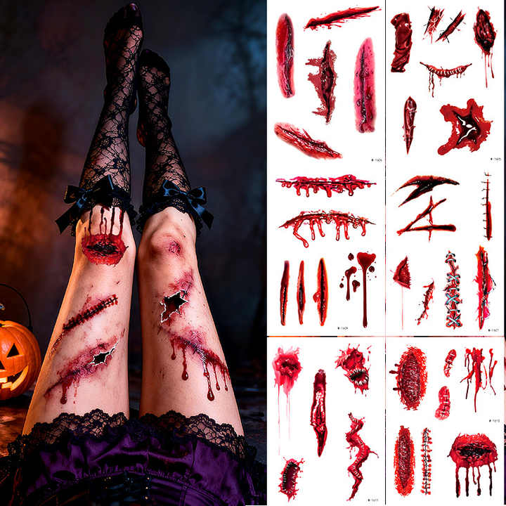 30Sheets Halloween Tattoo Scar Stickers, Wounds Blood Zombie Makeup ...