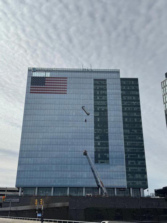 2 window washers seen hanging on side of Tysons high-rise building ...