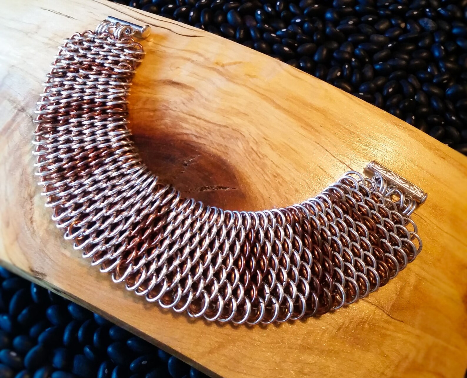Silver and Copper Dragon Scale Chainmail Cuff Bracelet Unisex Long - Etsy
