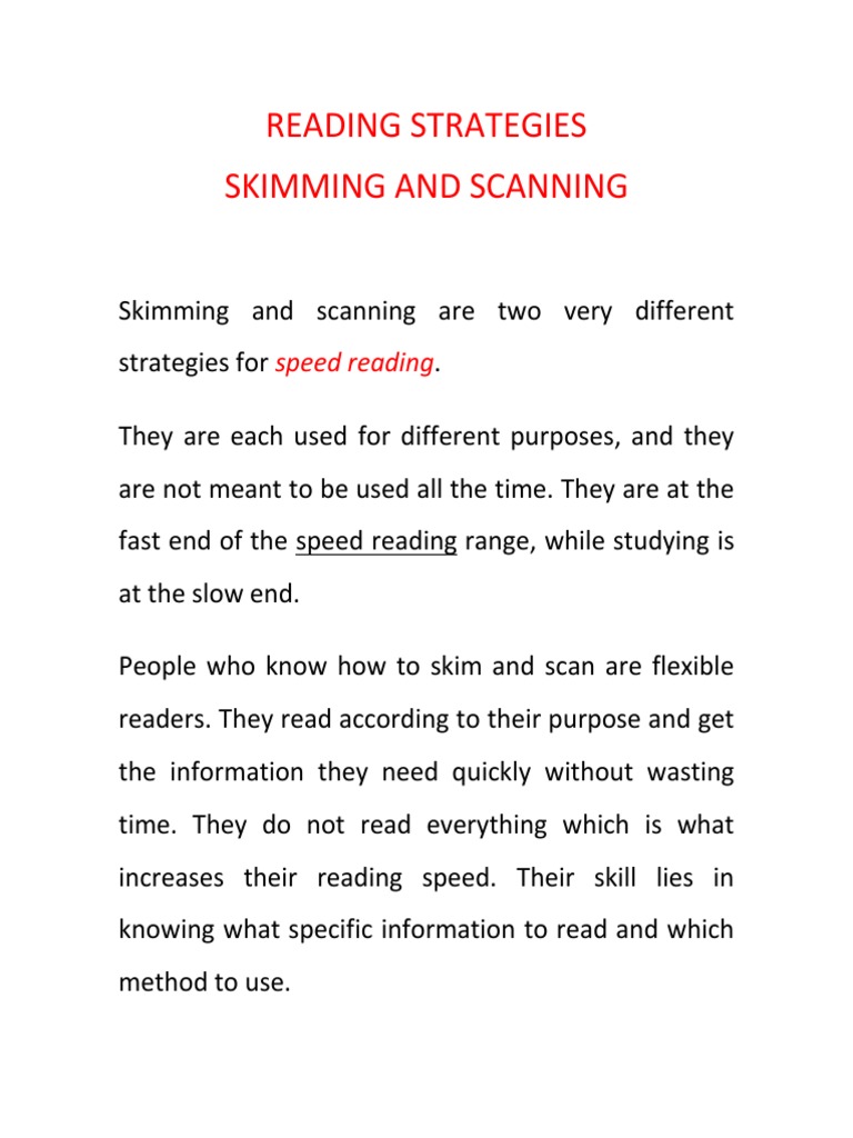 Reading Strategies: Skimming and Scanning | PDF | Speed Reading ...