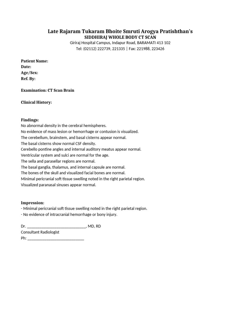 Normal CT Brain Scan Report | PDF | Radiology | Ct Scan