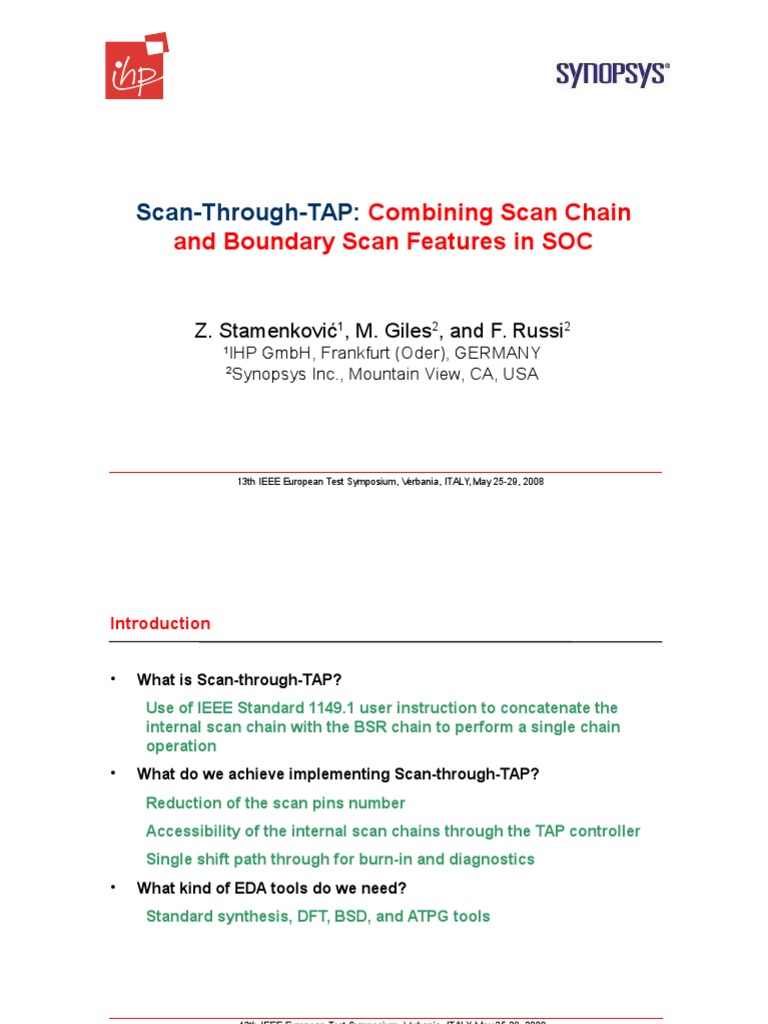PPT - Scan-Through-TAP: Combining Scan Chain and Boundary Scan Features ...