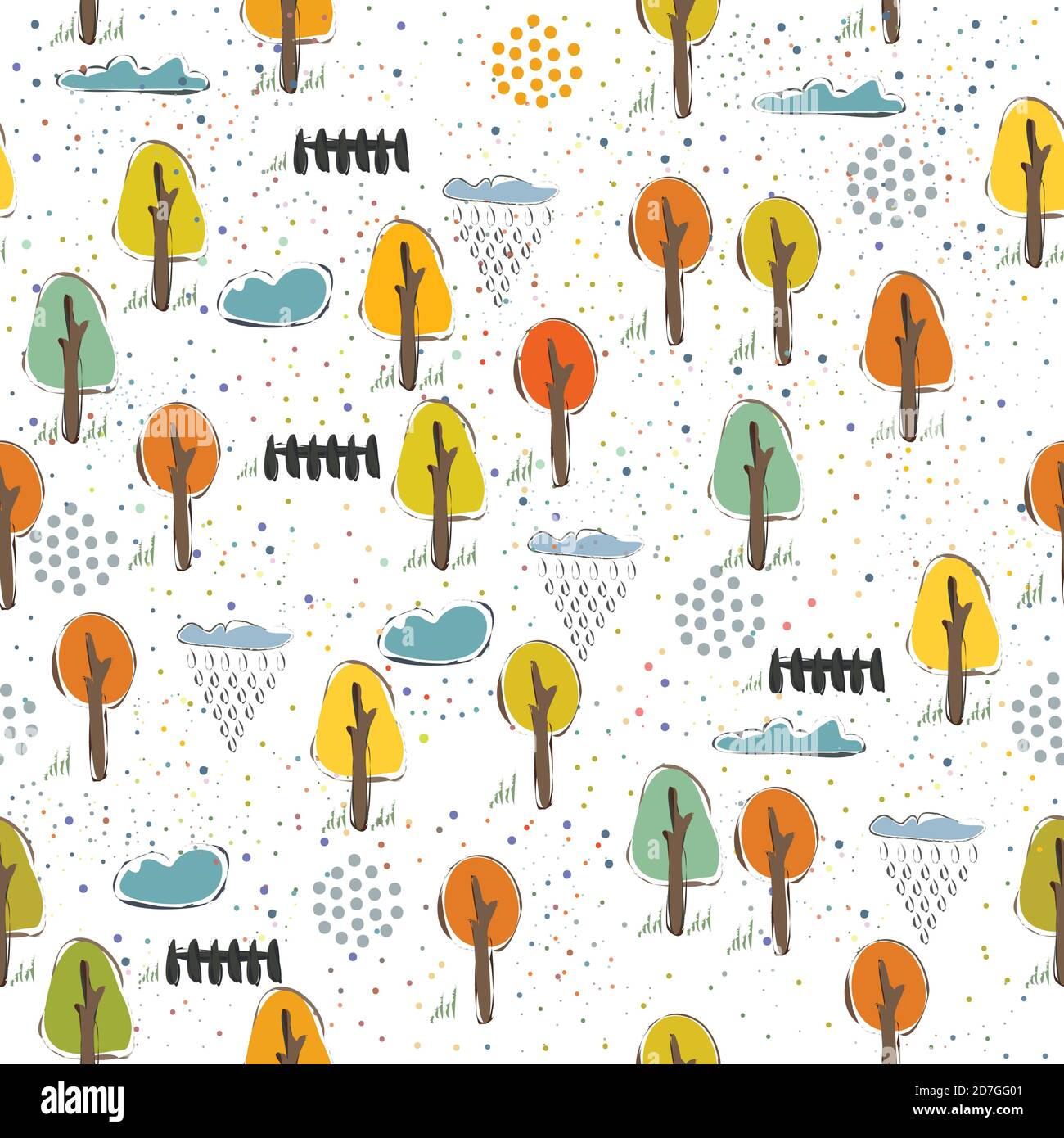 Seamless Pattern with Cute Trees and Fences. Scandinavian Style. Vector ...