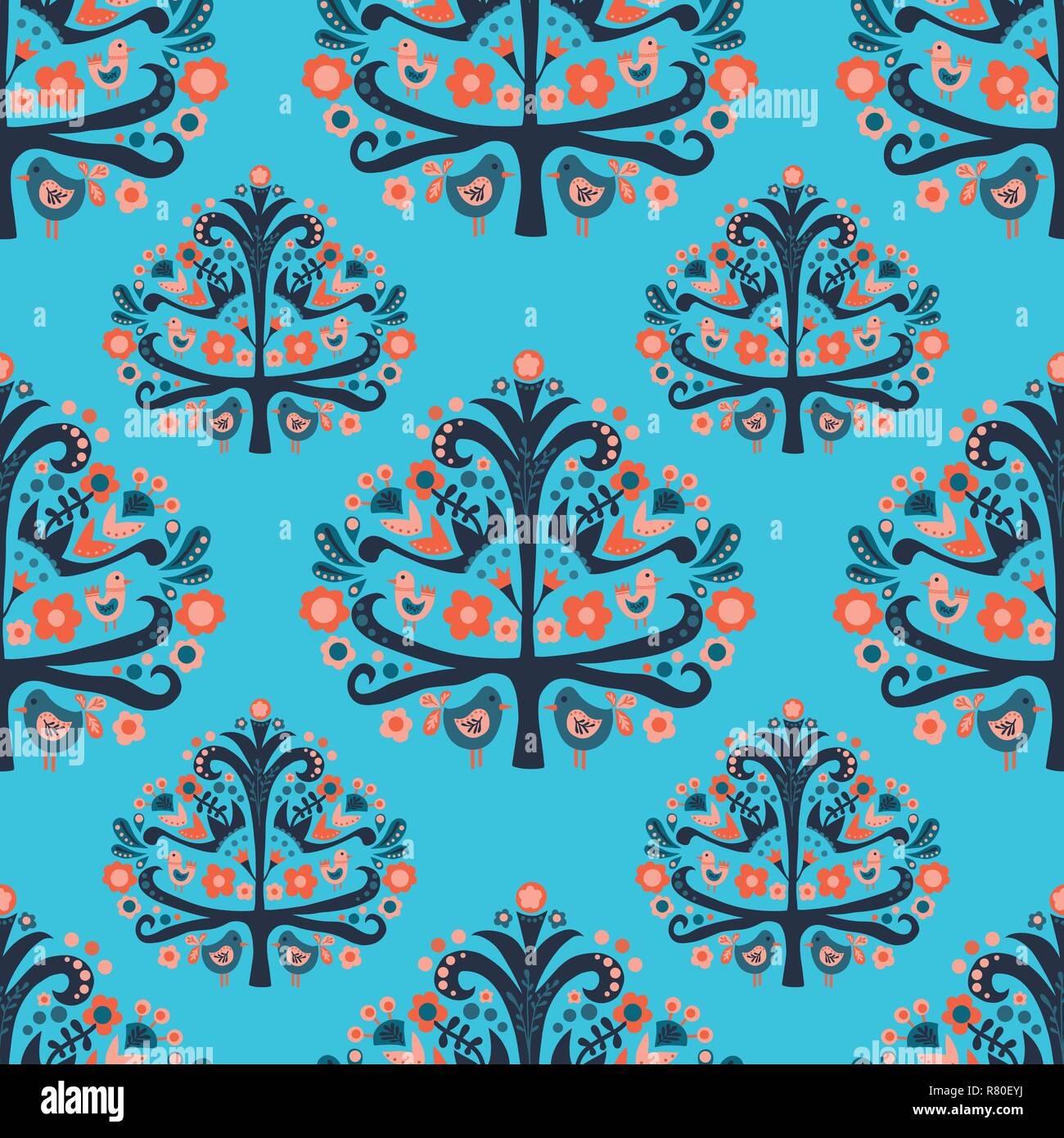 Scandinavian folk art tree birds seamless pattern Stock Vector Image ...