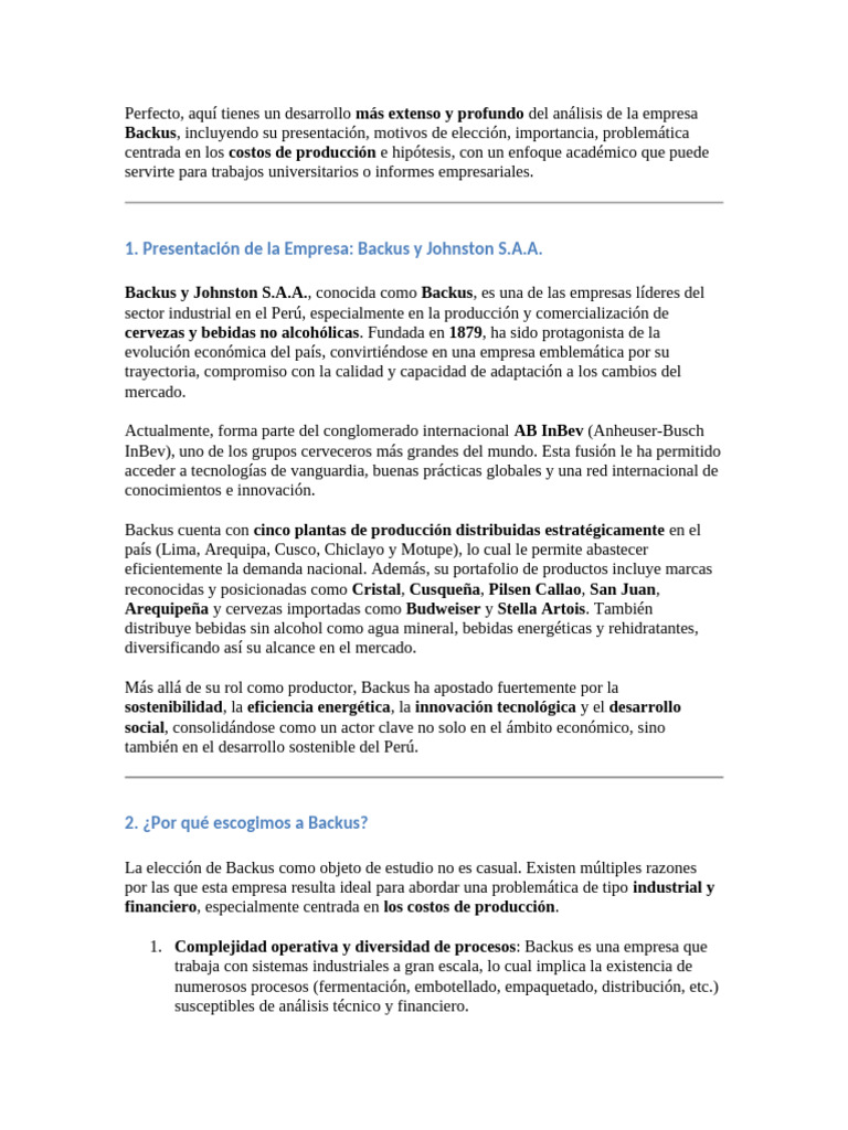 Análisis de Costos en Backus Perú | PDF | Logística | Sustentabilidad