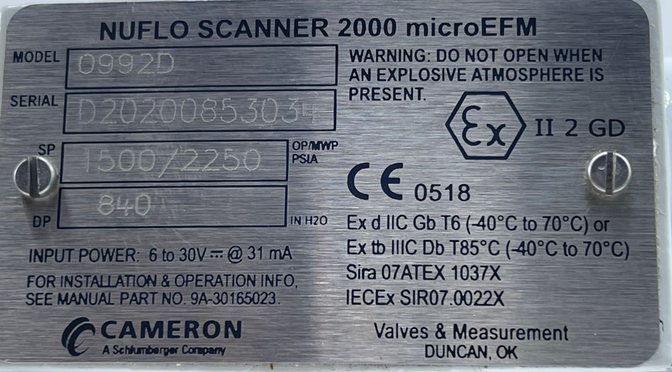 CAMERON NUFLO SCANNER 2000 microEFM 0992D WITH MANIFOLD | eBay