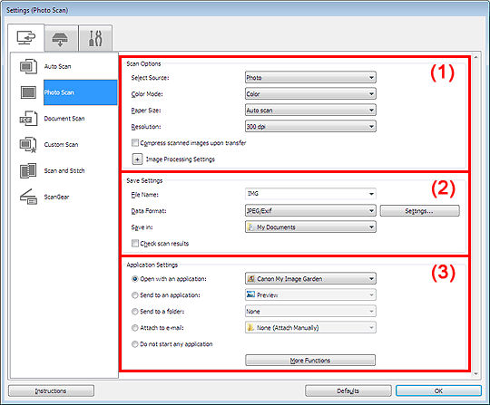 Settings (Photo Scan) Dialog Box - Windows