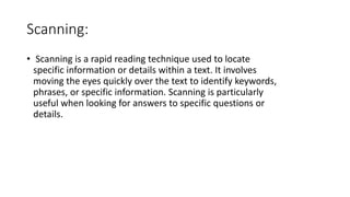 Reading Techniques, Scanning | PPTX