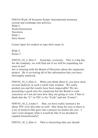 FIN534 Week 10 Scenario Script International monetary system and .docx