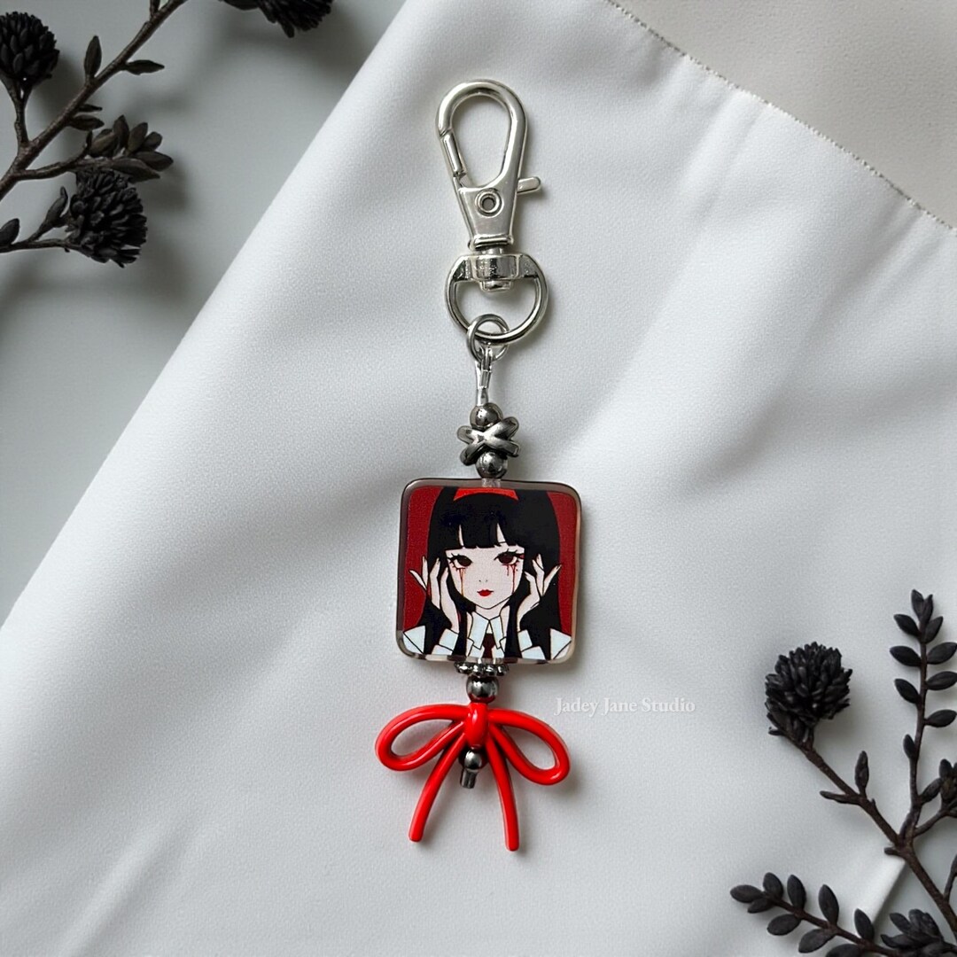 Kawaii Gothic Keychain Double Sided Acrylic Charm Stainless Steel Phone ...