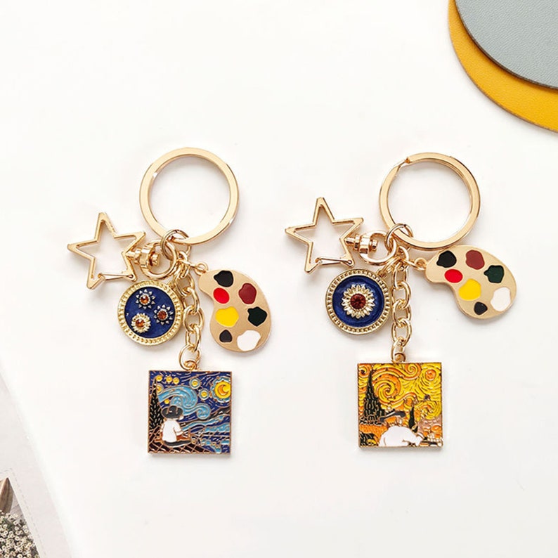 Pearl Girl Oil Painting Keychain Retro Art Car Key Chain Bag Hanging ...