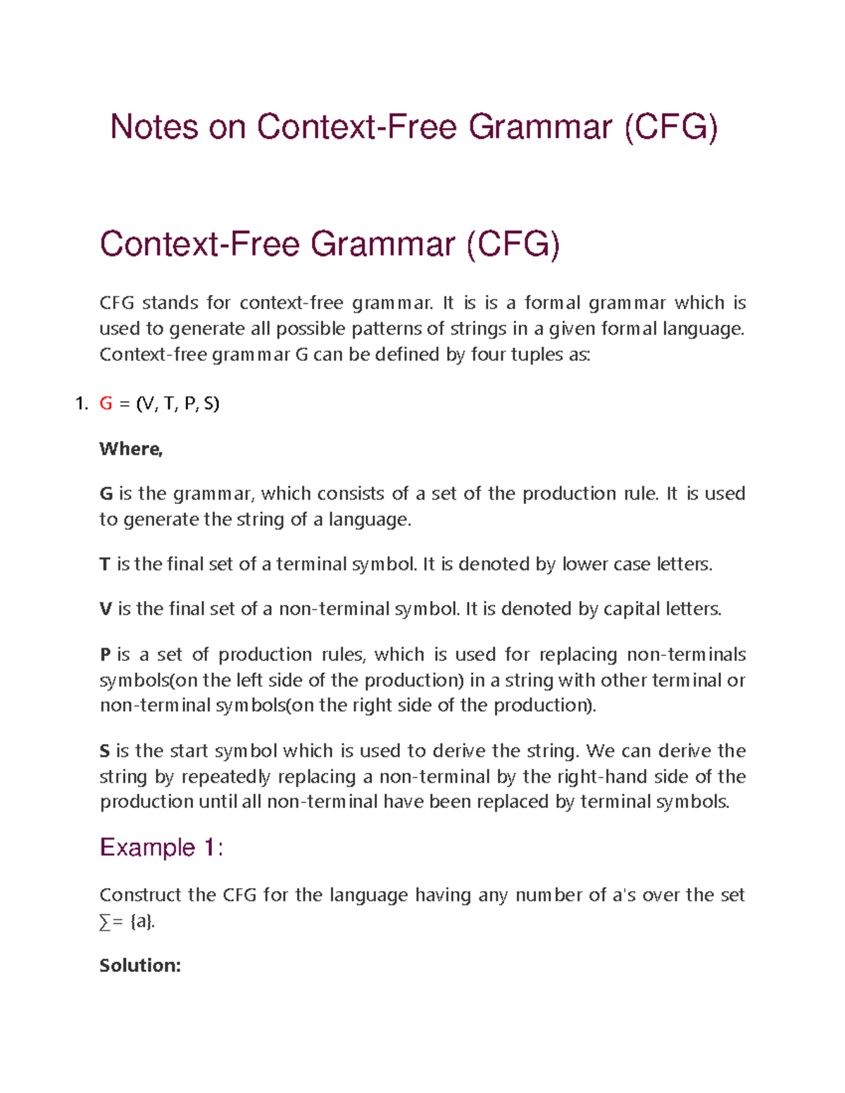 CFG: Context Free Grammar Overview and Simplification Techniques - Studocu