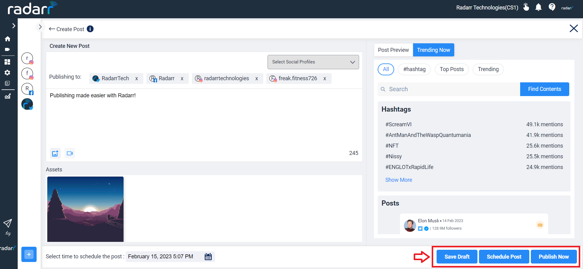 Create and schedule a post in Publishing Module - Radarr by Genesys ...