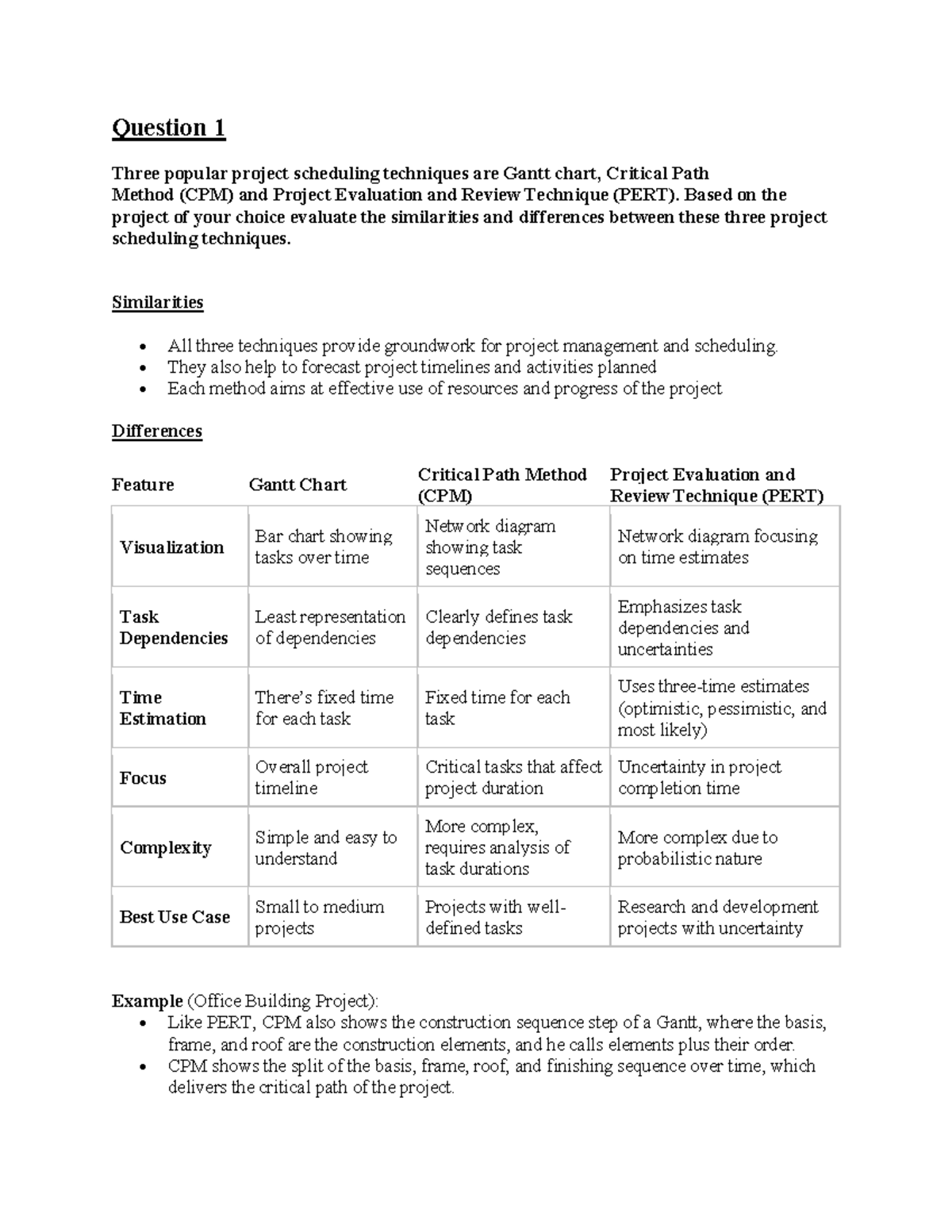 OM 101: Comparing Gantt, CPM, and PERT in Project Scheduling - Studocu