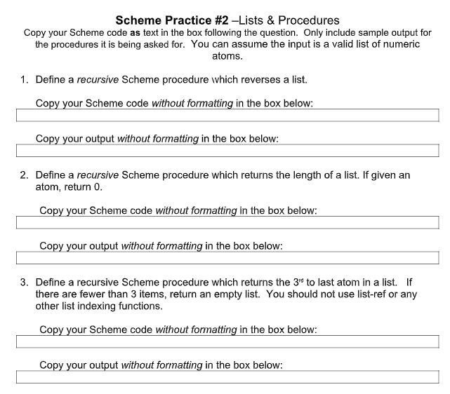 Solved Scheme Practice #2 -Lists & Procedures Copy your | Chegg.com