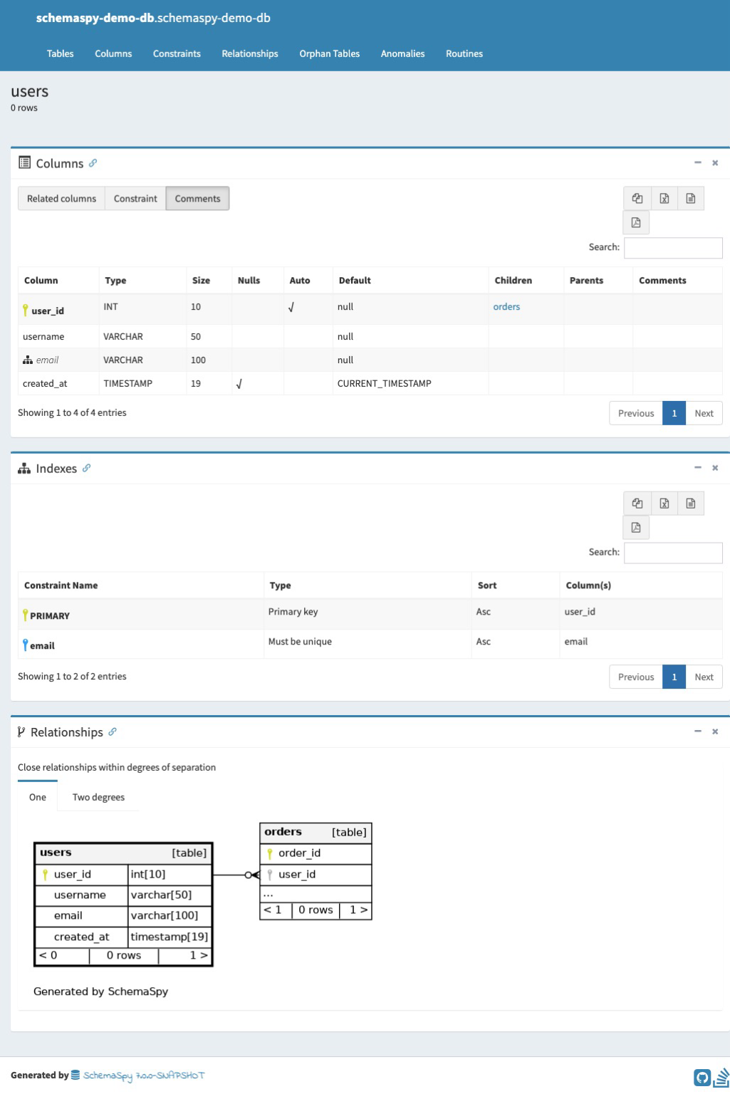 SchemaSpy • Database Documentation Built Easy.