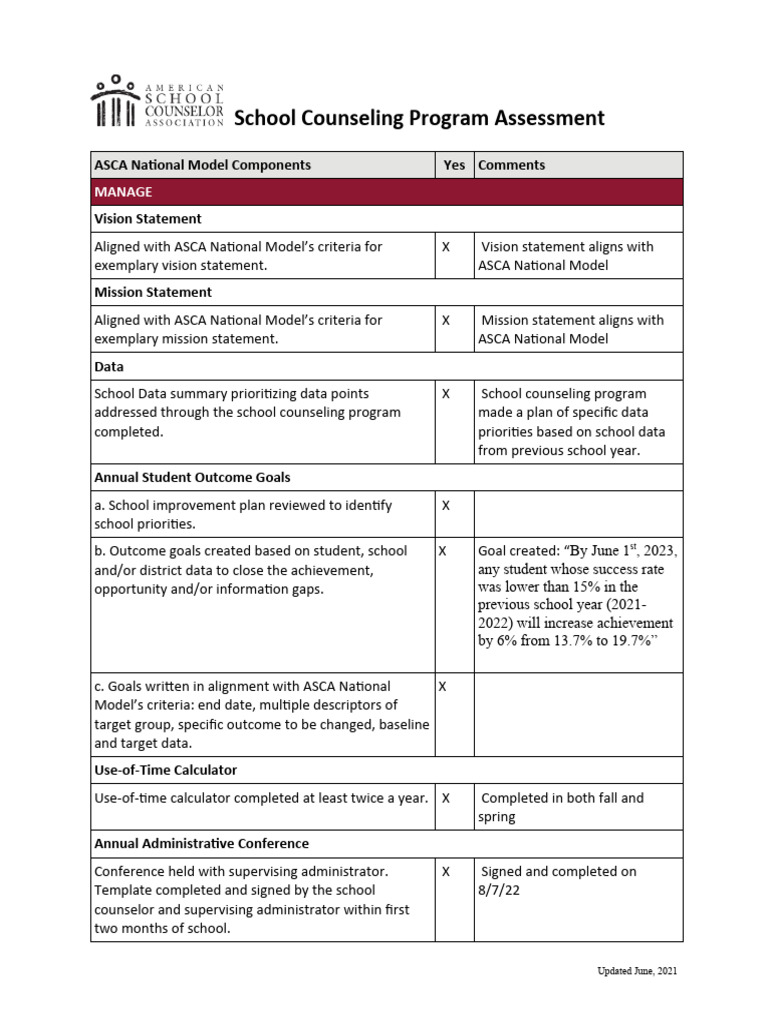 ASCA School Counseling Program Assessment | PDF | School Counselor ...