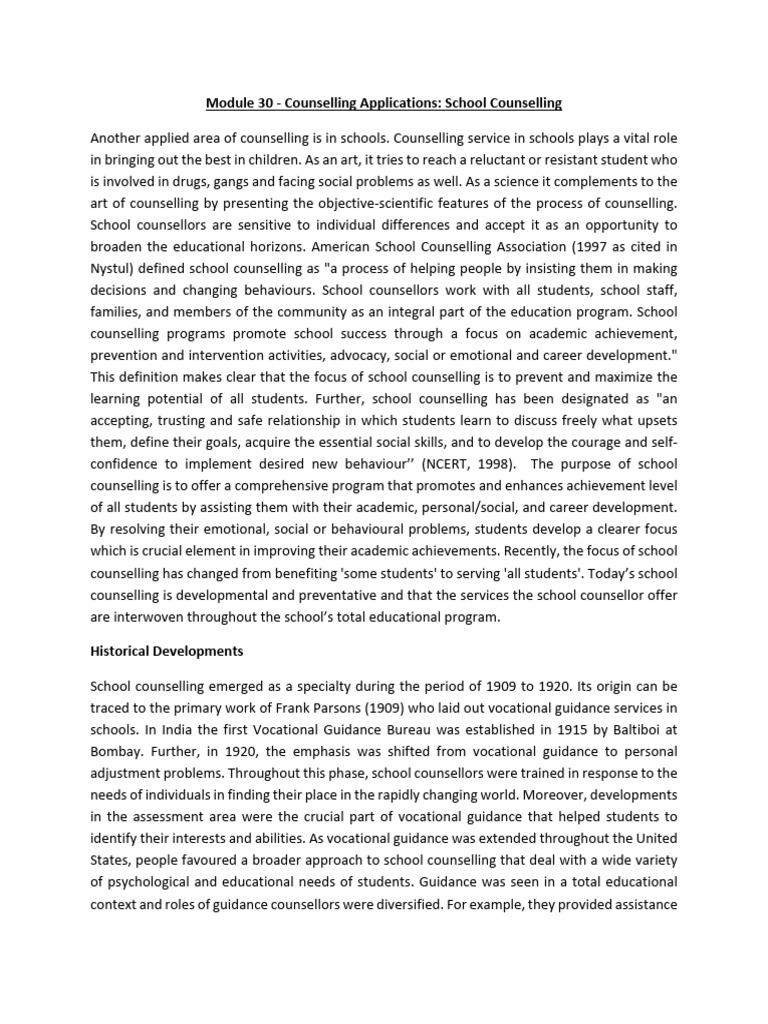 Module 30 - Counselling Applications- School Counselling | PDF | School ...