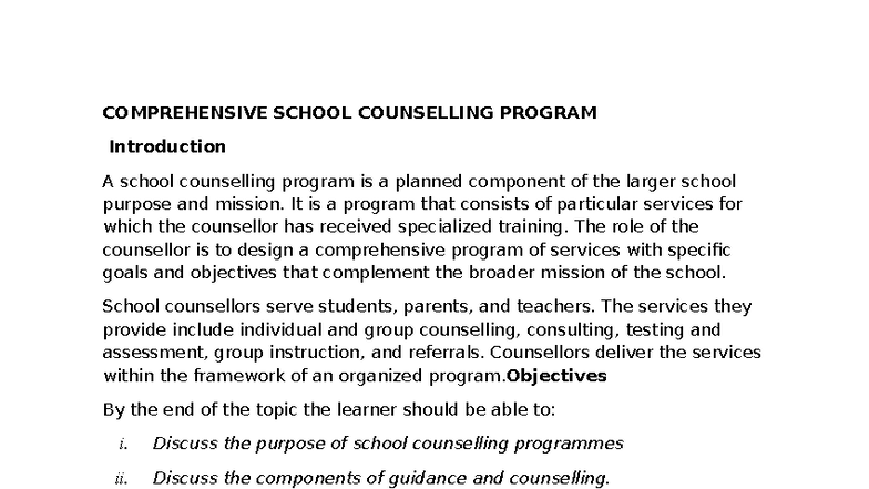 Comprehensive School Guidance Counseling Program Overview - Studocu
