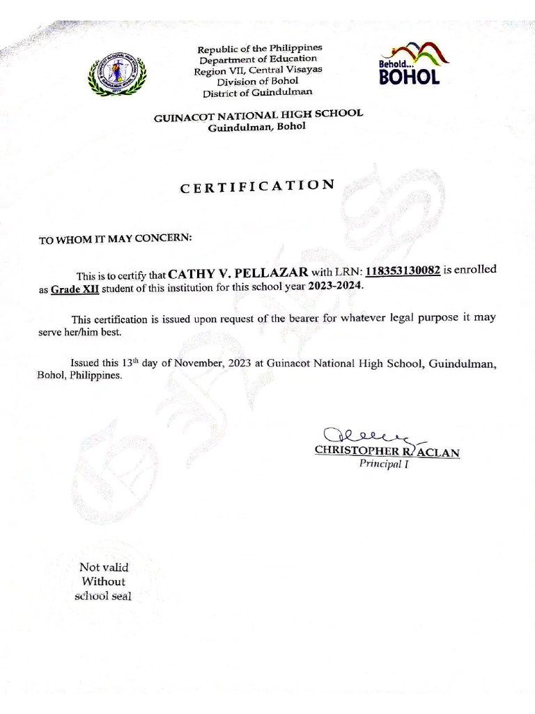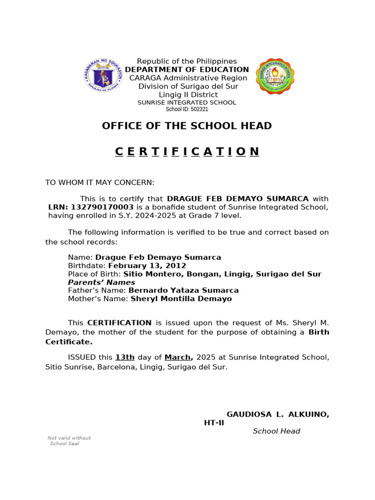 SAMPLE SCHOOL CERTIFICATION | PDF