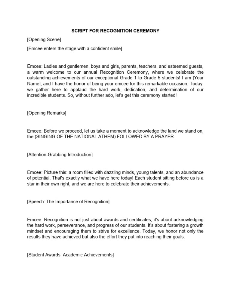 Recognition Ceremony Emcee Script | PDF