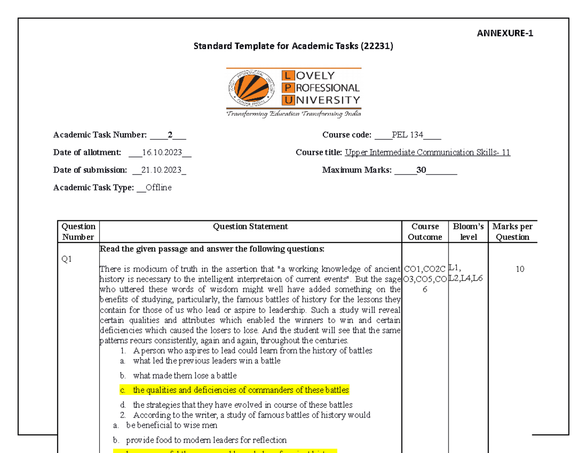 PEL134CA3Academic Task file - ANNEXURE- Standard Template for Academic ...