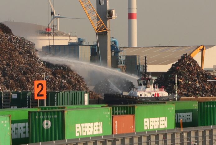 Schroothoop in brand bij Belgian Scrap Terminal | Beveren | hln.be
