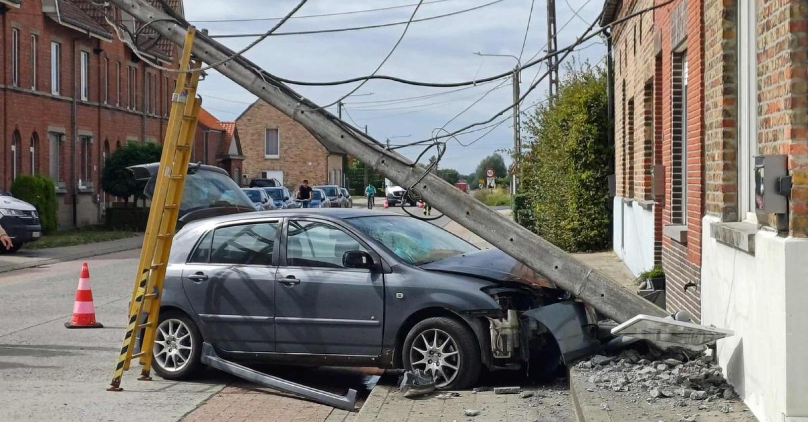 Man moet uitwijken voor tegenligger en botst op elektriciteitspaal ...